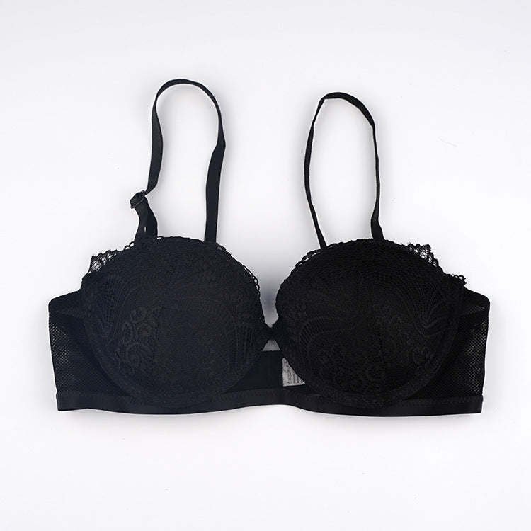 Sexy Underwear Mesh Edge Cloth Beauty Back Push up Breathable Upper Support Sweat-Absorbent Adjustable Comfortable Breast Holding - 70B - Black